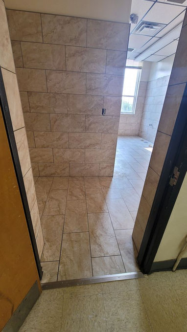 Complete renovation of restrooms. Pictures show before and after the completion of the project. All was waterproofed.