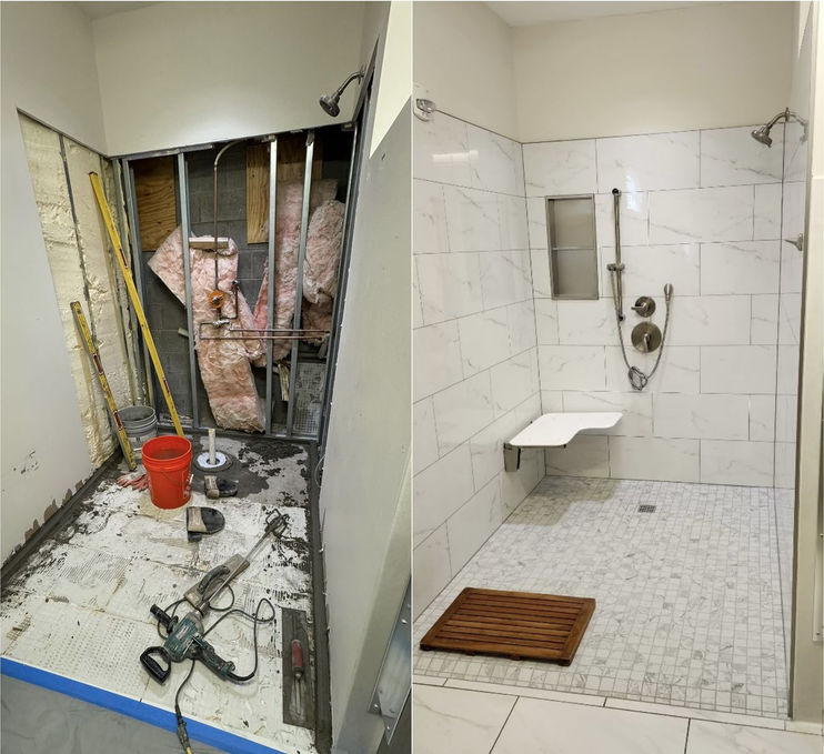 Complete shower remodel, including new tiles, fixtures, and updated design
